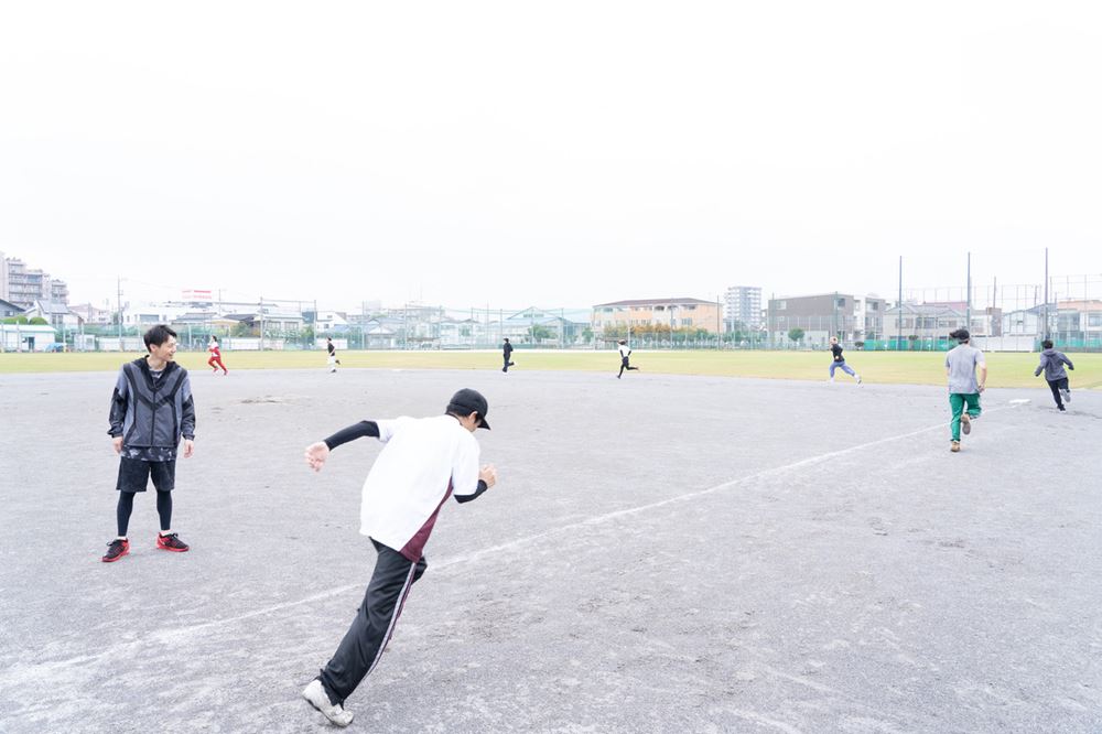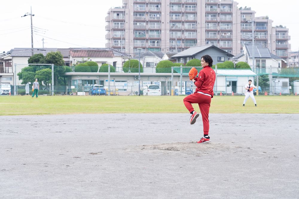 野球練習は、円形になってしっかりとウォーミングアップを行い、ベースランニングからスタート。八木塔子役の太田奈緒さんは、高校の制服姿でベンチから練習を見守り、「塔子は途中から野球部のマネージャーになるという役なので、私も稽古を通して、皆さんの輪の中にどんどん入っていきたいなと思っています。今日、このベンチからグラウンドを見ることができたのもよかったです」とコメント。