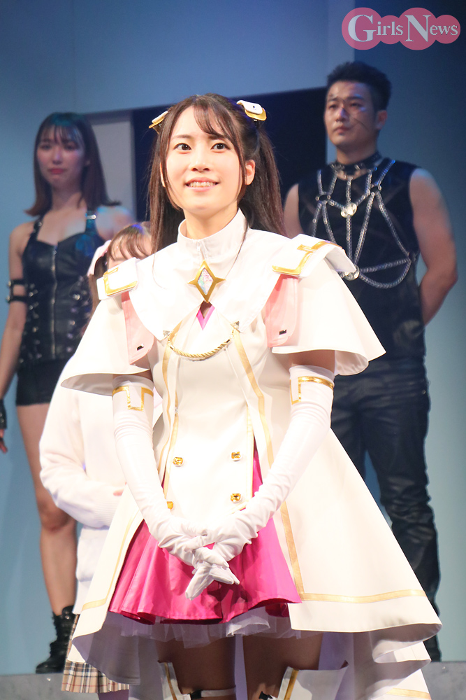 「この作品のいいところは、女の子が頑張ってる姿を沢山見てもらえるところです。殺陣にダンスにお芝居にと、盛り沢山なので、きっと劇場に来たお客さんが元気や勇気をもらって帰れると思います」