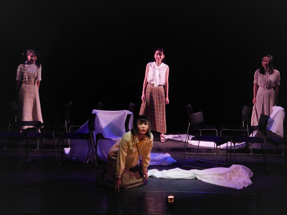 上の立場というのが苦手で、母親を演じるにはどうしたらいいんだろうとずっと考えていました。稽古場では三姉妹のキャストにも敬語を使っちゃったりしたんですけど、お芝居中はお母さんとして頑張ってしていますので、暖かく見ていただければと思います。