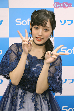 この日はドレッシーなネイビーブルーの衣装で出演したが、「まさか、壁の色と被るとは…」と安藤さんは苦笑い。“ソフマップの壁”が約半年ぶりに復活したばかりだと告げると、「もしかして、私専用?」と驚いていた。