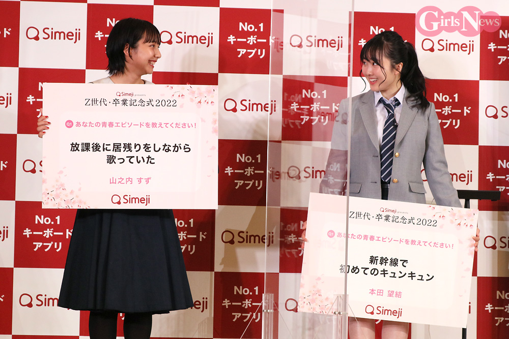Z世代を代表するタレントの本田望結さんと山之内すずさんが2日、『Simeji Presents Z世代・卒業記念式』イベントに、平成ノブシコブシ(吉村崇さん・徳井健太さん)と共に出席した。