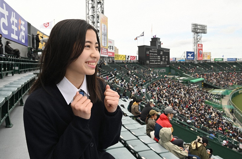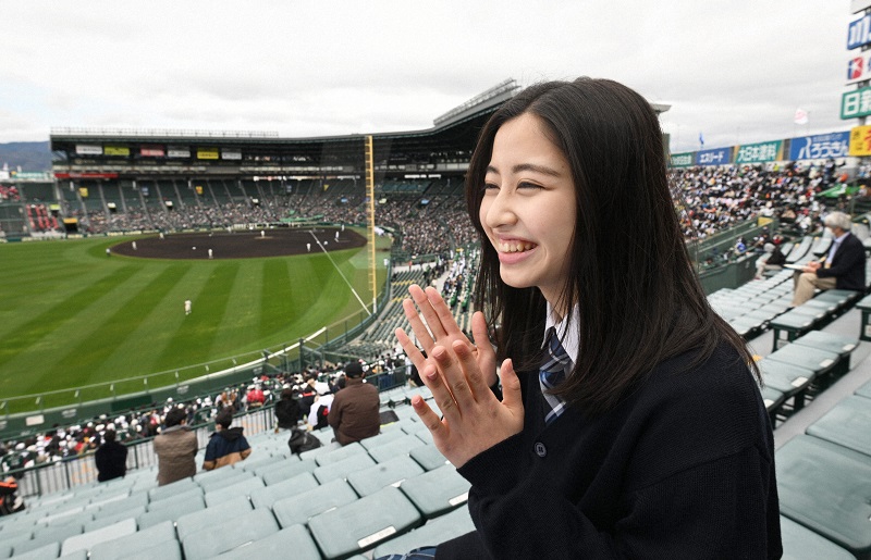伊丹さんは4月から高校2年生で、現在16歳。小学6年生の時に「第15回全日本美少女コンテスト」で演技部門賞を受賞したことをきっかけにデビューしている。この日は午前9時前に甲子園球場に入り、毎日放送(MBS)の実況ブースで開会式の生放送にゲスト出演した後、バックネット裏や外野席で浦和学院(埼玉)―大分舞鶴(大分)の開幕試合を観戦した。