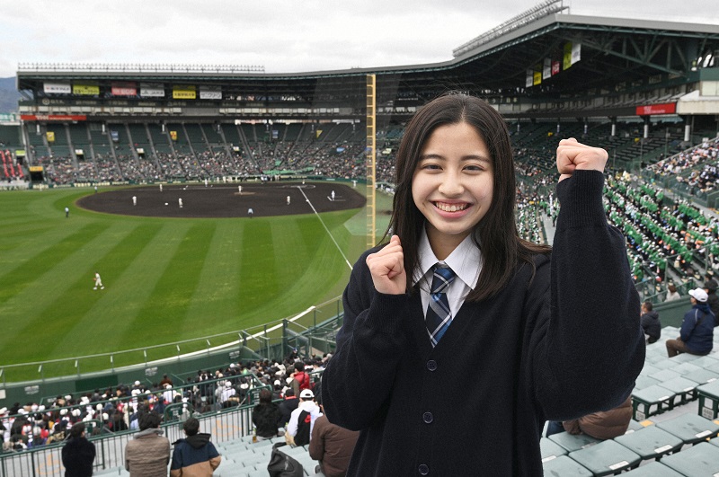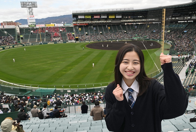 「センバツ応援イメージキャラクター」を務める女優・伊丹彩華さんが、19日、阪神甲子園球場で開幕した「第94回選抜高等学校野球大会」の開会式の生放送に出演し、開幕試合を観戦した。