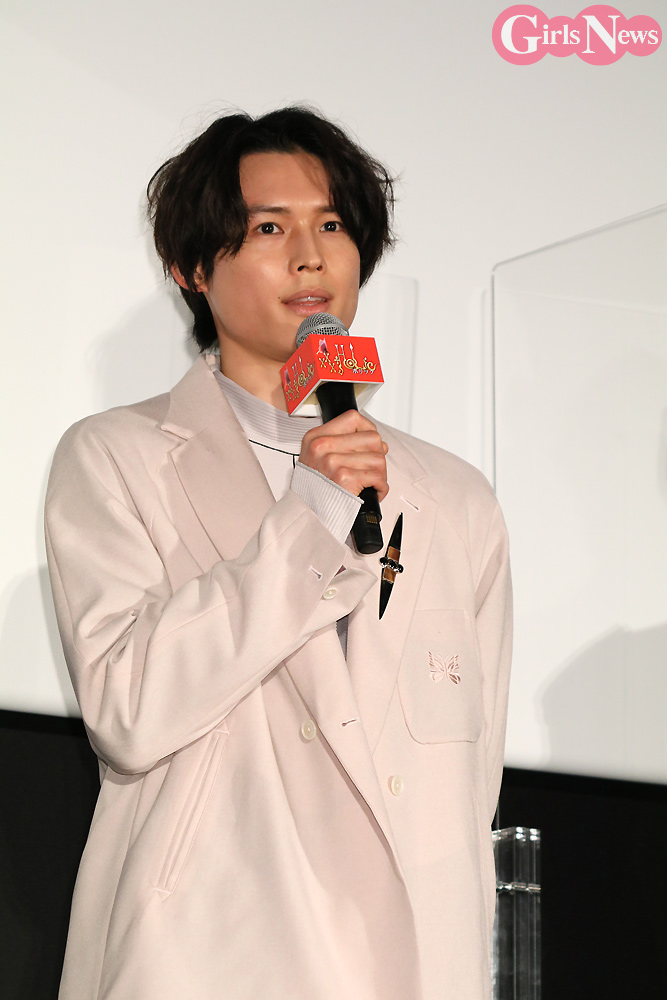 挨拶に続いて、玉城さんは仕上がった映画を観た感想を、「CGをたくさん使っているので、撮影では実際にないものをあるように演じていたんですけど、蜷川さんのCGの使い方がすごい。完成された作品を観て、驚きと同時にすごく嬉しかったです」とニッコリ。