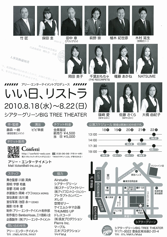 8月18日から南池袋シアターグリーンで行なわれる舞台「いい日、リストラ」に1組2名様をご招待。元モーニンング娘。保田圭さんや、グラビアアイドル「佐野夏芽」から改名、女優宣言したNATSUMEさんなど素敵なキャストが出演する。