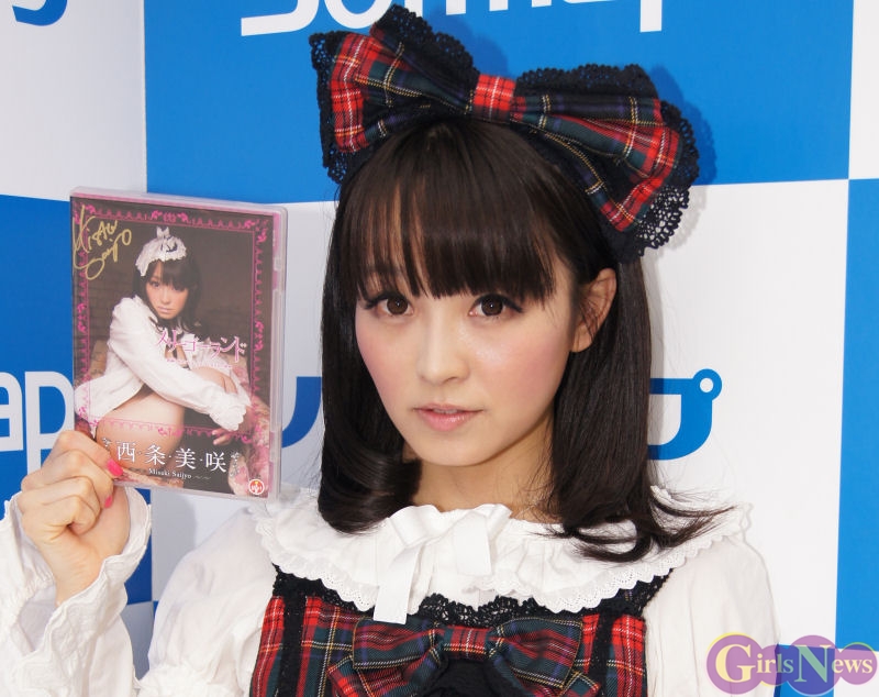 2月18日、女優の西条美咲さんの1stDVD「メリーゴーランド」(エスデジタル)の発売を記念し秋葉原でイベントが行われ、キュートなコスプレ衣装で登場した。