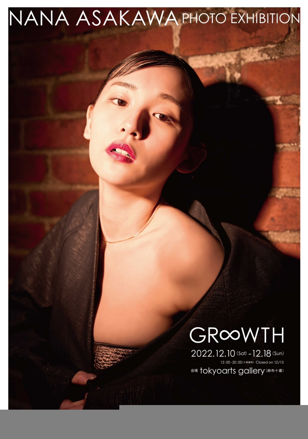 本展は、2022年6月浅川梨奈写真集『GR∞WTH(グロース)』(集英社)の発売を記念し、未発表含む作品を展示販売する。