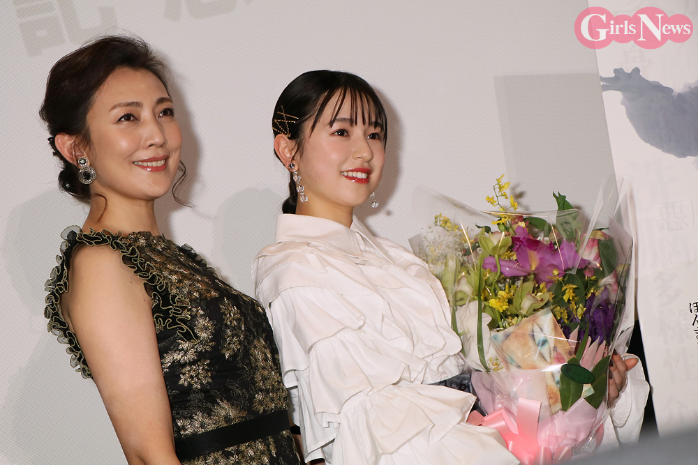 イベントの最後には、田中さんから花束が送られるサプライズを受けて「初めての出演がこの映画で本当によかったです。私にとってこの映画が第2の家族みたいなものなので、皆さんも家族になれるぐらいたくさんこの映画を愛していただけたらなと思います」と織田さんは笑顔で伝えた。