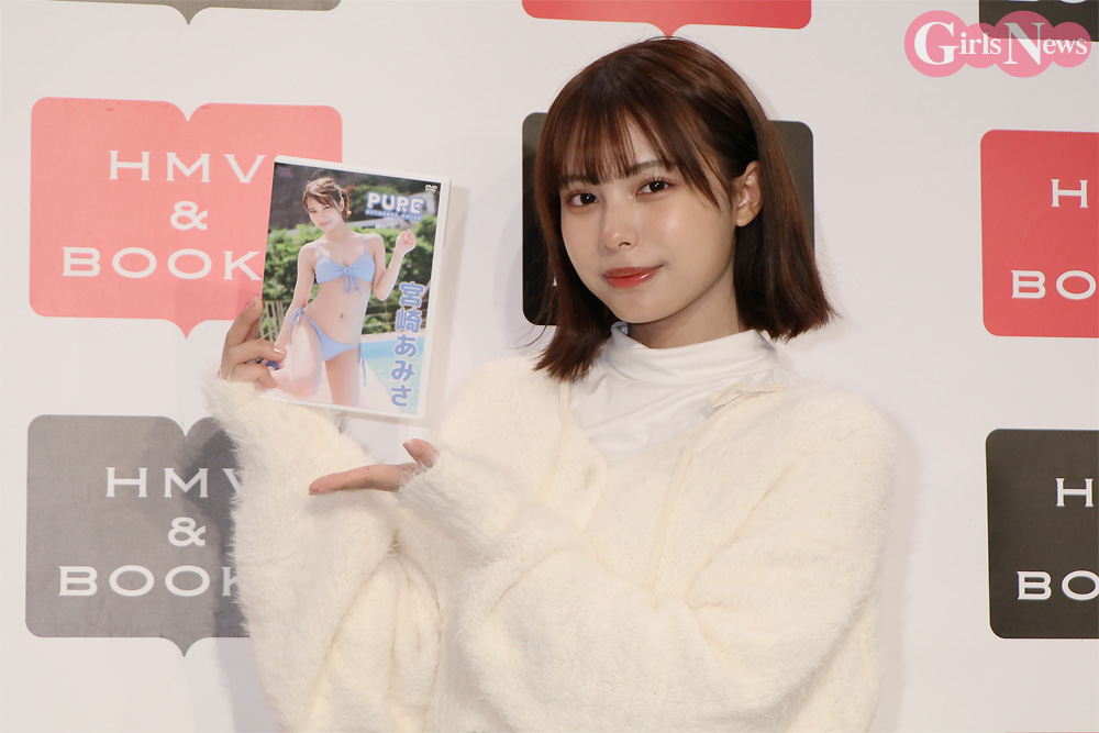 ソノニをイメージした白い衣装で登場した宮崎さんは、20歳の誕生日を迎えた10月28日に発売された本作を手にして「DVDはもっとお姉さんがやるイメージがあったんで、自分にはどうだろうとマネージャーさんと相談したら、“いや、宮崎あみさの良さを全部出す!”って言われて、決心しました」とアピール。