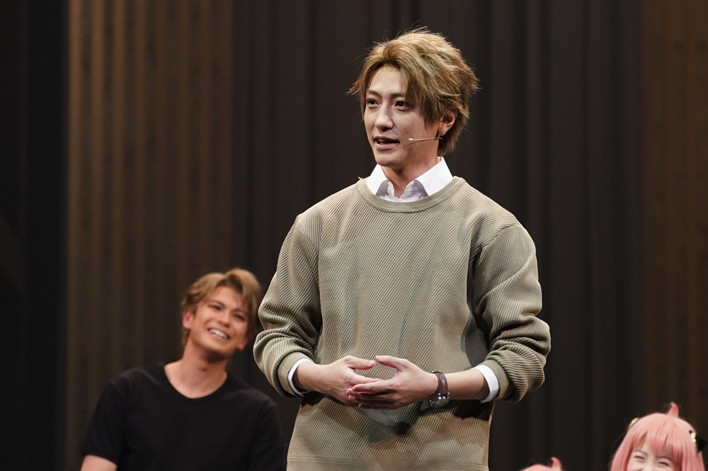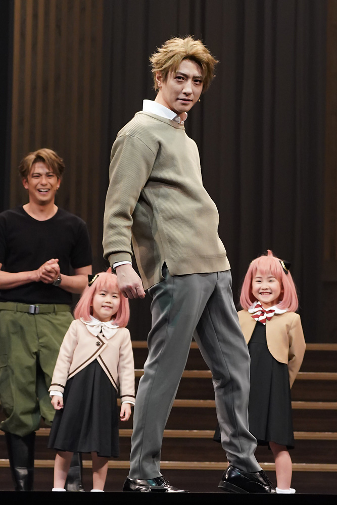 凄腕スパイ“ロイド・フォージャー”役の森崎さんは、初日を迎えた気持ちを色にたとえ、「白ですね。その心は、スパイファミリーが本日幕を開けて、ここから5月末まで走り抜けて、お客様と一緒に作る舞台がどんな色に染まっていくのか、僕自身も楽しみです」とコメント。