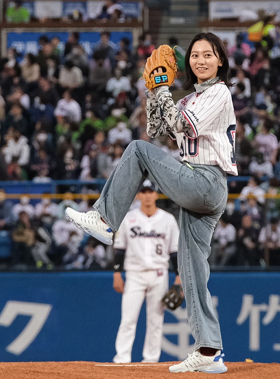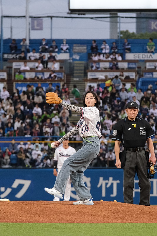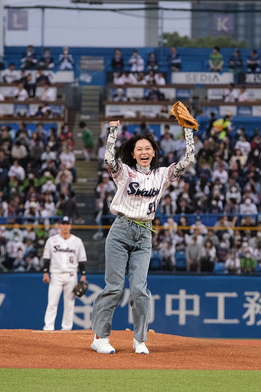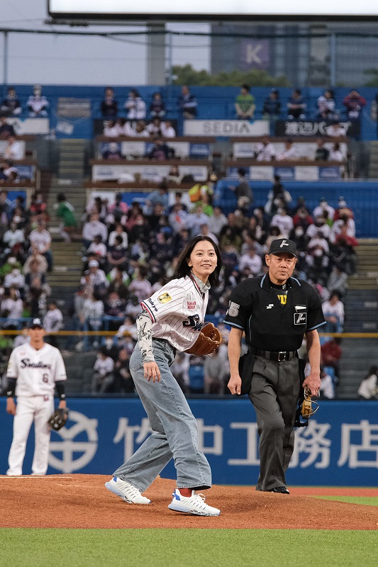 女優の工藤綾乃さんが29日、東京・神宮球場にて行われた東京ヤクルトスワローズ対阪神タイガース戦で自身 6 回目となる始球式に登板した。