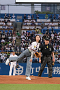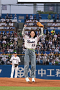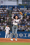昨年の始球式では大暴投で一塁側ベンチに投げ込むという歴史的な大失敗もあり、つば九郎からクレーム(!?)もあったが、今年は木澤尚文投手とドラフト 1 位吉村貢司郎投手のフォームをミックスで取り入れ、ノーバウンドで捕手のミットにおさまった。