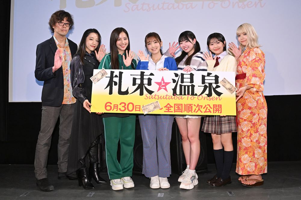 映画『札束と温泉』(6月30日公開)の完成披露舞台挨拶が7日、東京・渋谷のユーロライブで行われ、主演の沢口愛華、共演の小浜桃奈、糸瀬七葉、大熊杏優、佐藤京、星れいら、メガホンをとった川上亮監督が登壇した。