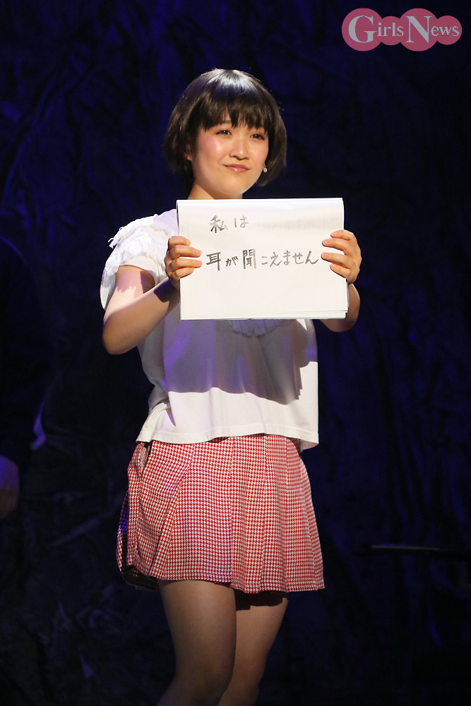耳が聞こえない難役に挑戦した山﨑さんは、「家で耳栓をして家族の口の動きだけで言葉が解るのか試してみたんですが、とても無理でした。舞台では実際に補聴器を着けているのですが、ポロッと落ちてしまったり、扱いに苦戦しています」と、役作りの苦労を明かした。