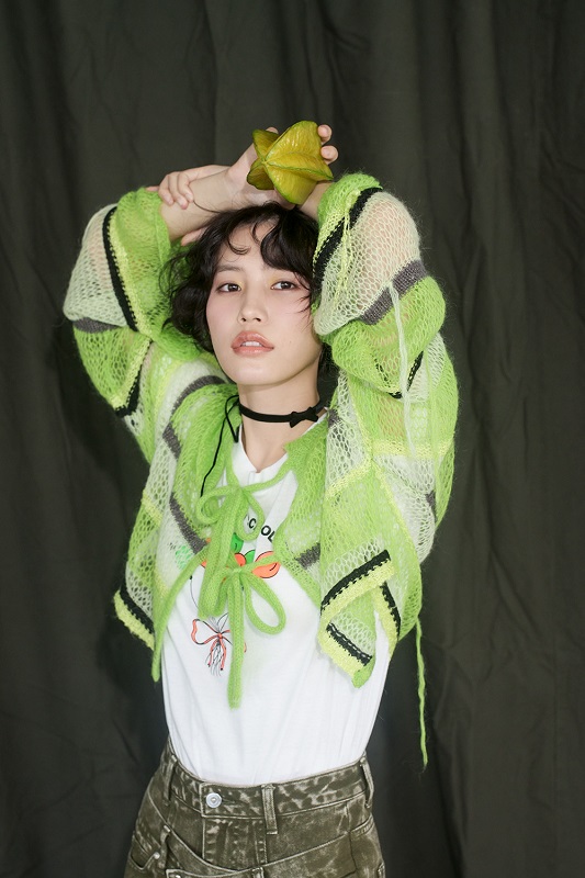 衣装は、メロンを連想させる色味のタンクトップに、まるでメロンの種のような粒が散りばめられた手袋を着用。衣装を着用した南さんが登場すると、「これは完全にメロンだ!」と現場スタッフが口を揃えたという。この月は、丸っとしたメロンが椅子の端に添えられ、アーティスティックな一枚に仕上がった。
