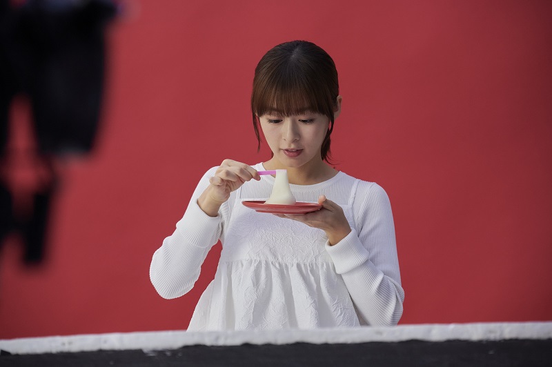 CMの撮影では「雪見だいふく」といえば恒例のおもちのばしシーンで、スタッフ一同、息をのむ緊張した空気に包まれた中、1 年ぶりのCM 撮影でのおもちのばしとなった森さんは、緊張というよりも、楽しみといったワクワクされた様子でスタンバイ。撮影が始まると、最初のテイクから見事なおもちのばしを披露し、現場では大きな拍手がわき起こったという 。現場の雰囲気に森さん自身も少し照れつつも 、「 よっしゃー 」と納得の笑みを見せていた 。