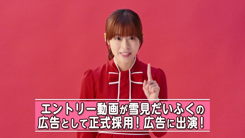 「雪見だいふく」を伸ばしている様子を撮影し、SNS に動画を投稿することで参加できる「#雪見のばしチャレンジ」。「雪見のばし」のコツとして、常温で8 分待つもしくはレンジで8 秒温めた、ぷにぷにの「雪見だいふく」を用意することや、フォークを刺す位置、唇で優しく挟んで伸ばすといったポイントを森さんが自ら紹介し、キャンペーンへの参加を呼びかける。CM の最後は、「みなさんの参加待ってます! 私の記録に勝てるかな 」と、CM キャラクター3 年目ならではの、自信たっぷりの表情で締めくくる。