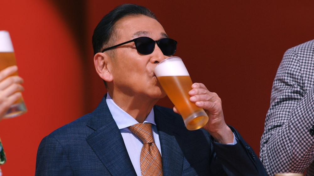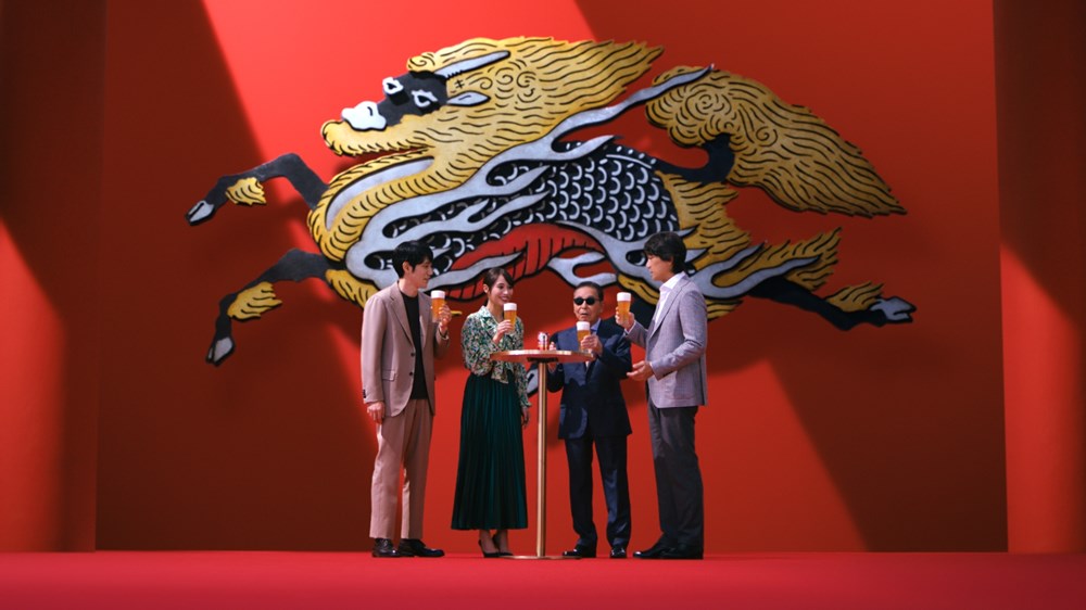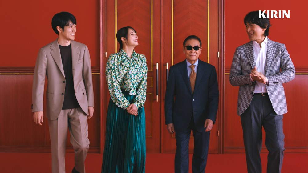 扉が開くと、タモリさん、江口洋介さん、松山ケンイチさん、広瀬アリスさんの4名が「お~!」と一斉に声を上げて、新しい「本麒麟」を待ち望んでいた様子で登場。広瀬さんは「ワクワクしますね!」と満面の笑みを浮かべ、初めての「本麒麟」を楽しみにしている様子。