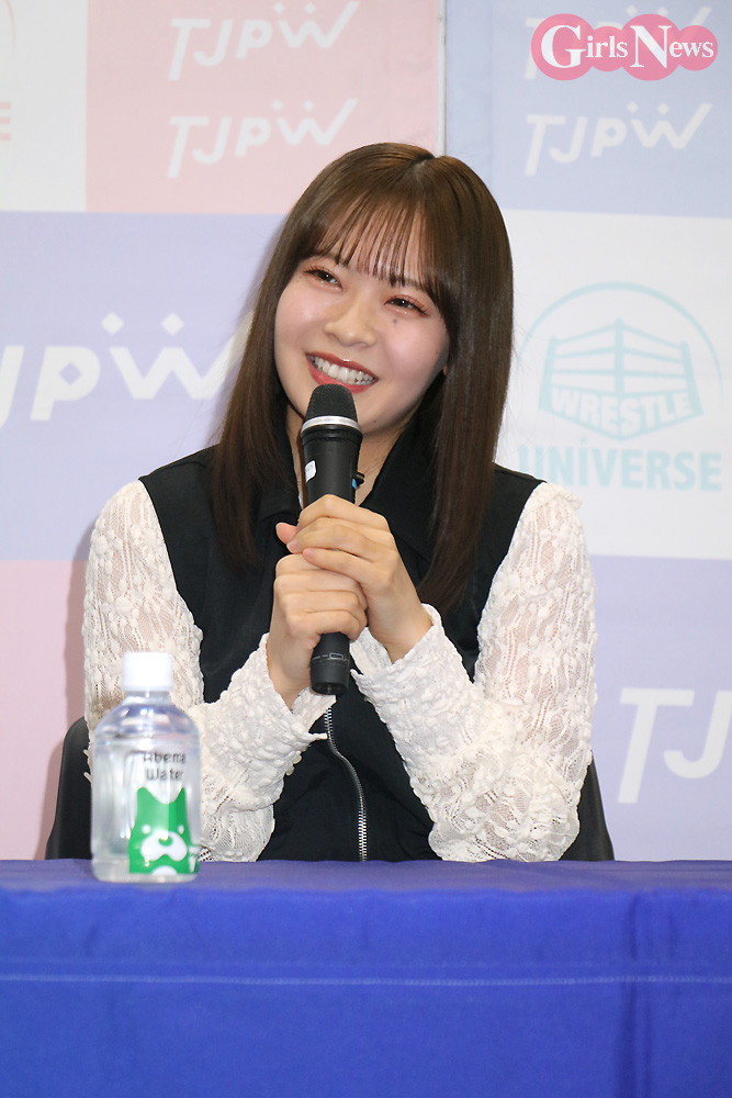 現在、東京女子プロレスで戦っている元SK48の荒井優希選手について聞かれると、「チャンピオンですし、私はまだプロとしてゼロからスタートしたばかりなので、まだまだ意識しているというレベルではないのですが、すごく尊敬してる先輩です」と語った。