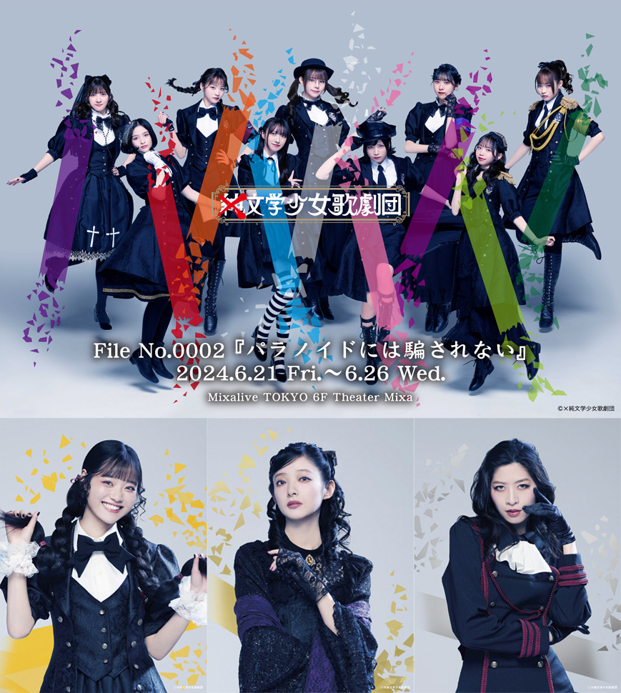 舞台発のオリジナルIPを展開する「×純文学少女歌劇団(ふじゅんぶんがくしょうじょかげきだん)」が6月に上演するFile No.0002『パラノイドには騙されない』に、涼雅、藤岡沙也香、立道梨緒奈の3名がゲスト出演することが決定した。