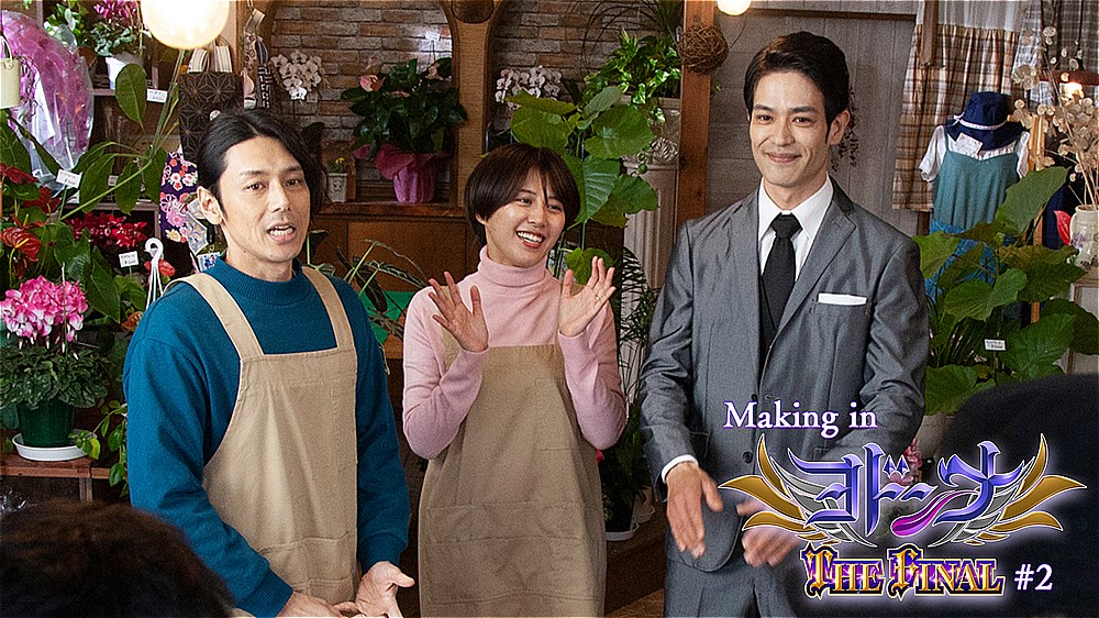 3月24日(日)10時より配信開始のメイキング第2弾『Making in ヨドンナ THE FINAL #2』では、ゲストキャストたちの撮影舞台裏を中心に届ける。『爆竜戦隊アバレンジャー』でお馴染みの富田翔さん、ミユキニシジマさん、阿部薫さんのフラワーショップの撮影シーンに、お店の常連客として登場する「スーパー戦隊親善大使」の松本寛也さん、襲撃される銀行の支店長を演じた水野直さん、ヨドンナたちを追い詰める小呂地組幹部・寒山役の青柳尊哉さんを紹介。感動のクランクアップの様子まで捉えたメイキングを送る。