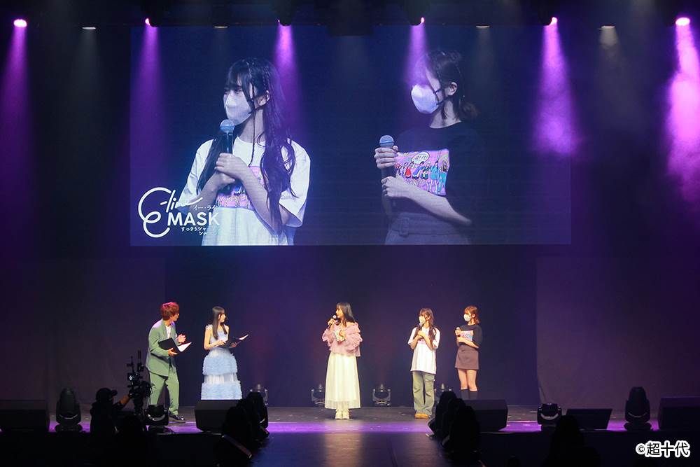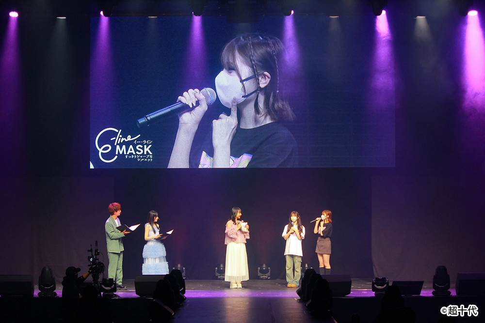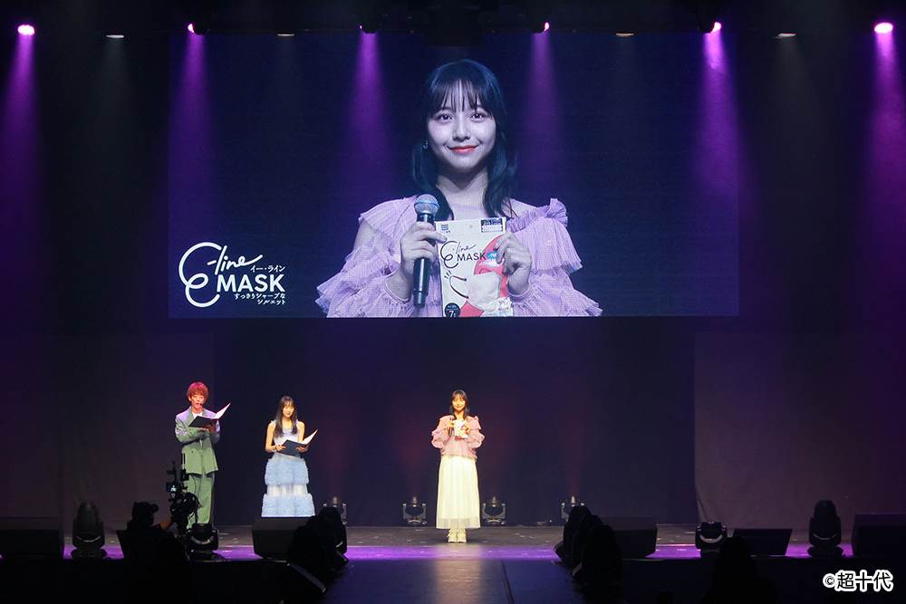 今回のイベントで山之内すずさんのステージトークのコーナーには、中川そらさん、藤田みあさんがマスクを着用して登場。「ナチュラルに鼻が高く見える」「どこの角度からもきれいに見える」「すっぴん隠しにも使える」「朝のむくみを隠してシャープに見せてくれる」といったコメントをはじめ、E-lineMASKを着けた際の「横顔のきれいさ」や「カラーバリエーションの豊富さ」など、魅力を存分に語った。