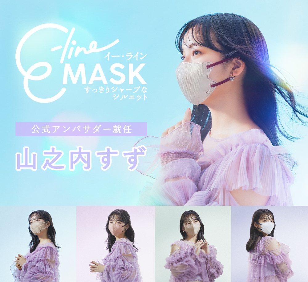 E-lineMASK 公式サイトでは、山之内すずさんのビジュアル撮影のメイキング・インタビュー動画を公開中。「このお話いただく前から愛用していた」「着けただけで鼻が高く見えるし、どこから見ても横顔がきれい」と裏話などを紹介している。