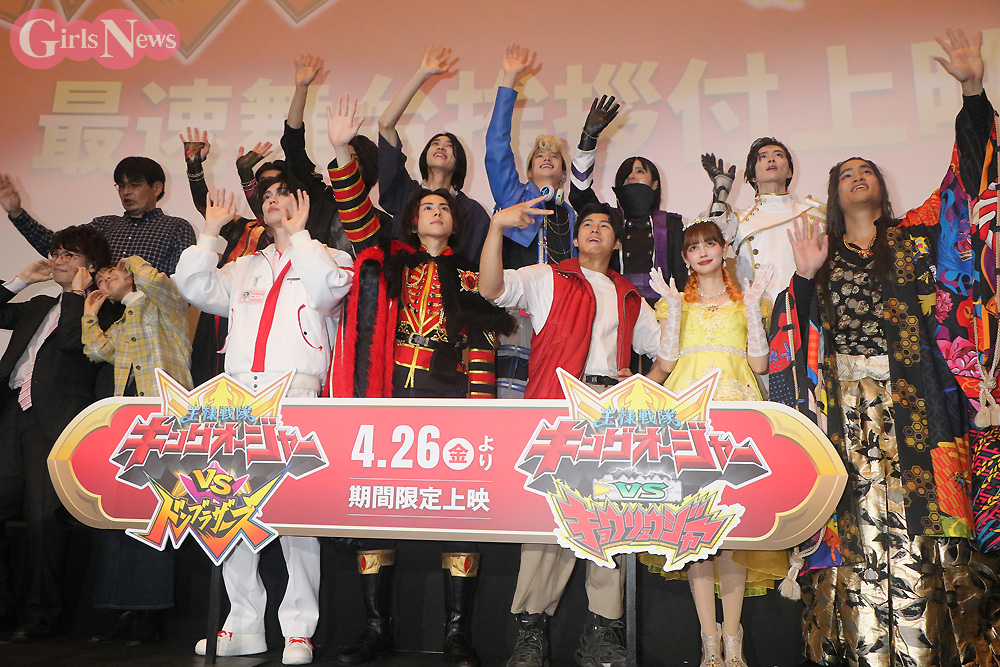 4月26日より劇場公開のスーパー戦隊シリーズ Vシネクエスト『キングオージャー VS ドンブラザーズ』『キングオージャー vs キョウリュウジャー』の最速先行上映会が23日、新宿バルト9にて開催された。