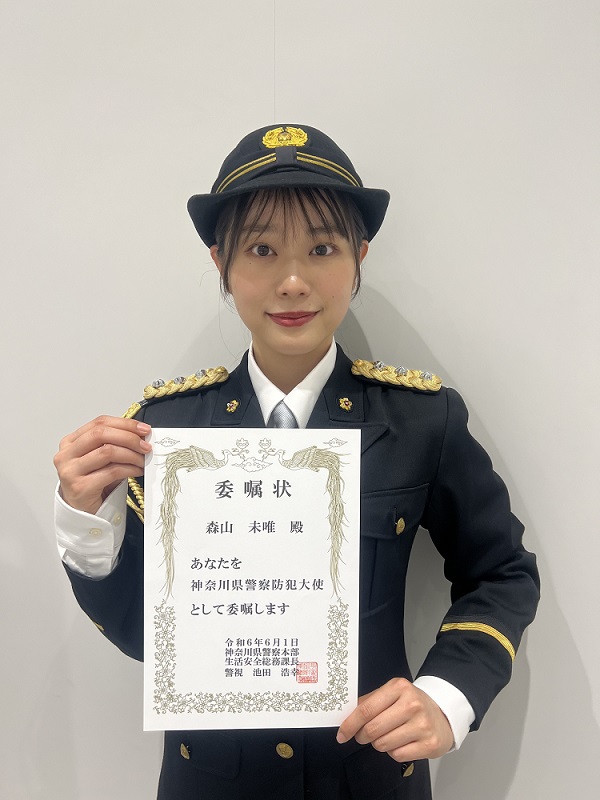 『水曜日のダウンタウン』(TBS)の人気企画「名探偵津田」に出演し注目された女優・森山未唯さんが、1日、横浜市役所 アトリウムにて開催された『神奈川県警察創立150年記念イベント「世代を超えた防犯フェスタ ~みんなで学ぼうくらしの安全~」』に 神奈川県警察防犯大使として出演した。