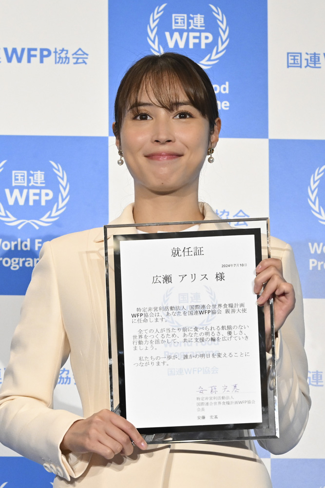 女優の広瀬アリスさんが10日、「国連WFP協会 親善大使就任記者発表会」にて、国連WFP協会親善大使に任命された。