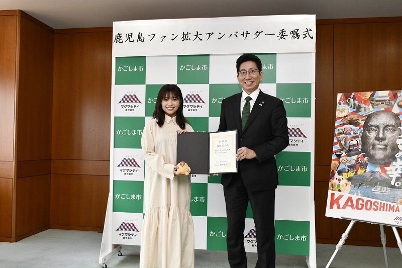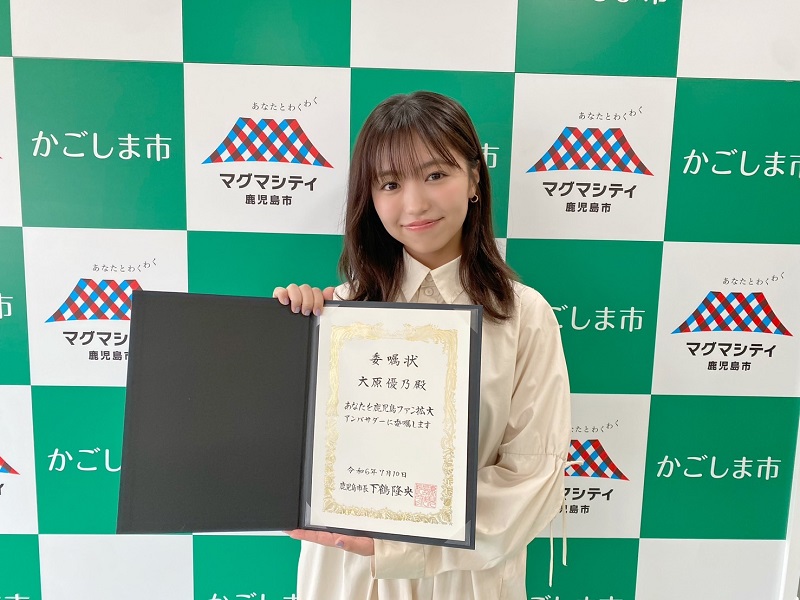 女優の大原優乃が10日、鹿児島市役所にて「鹿児島ファン拡大アンバサダー」委嘱式に参加、鹿児島市の魅力をSNSなどで若者に発信する県出身のアンバサダーとして任命された。