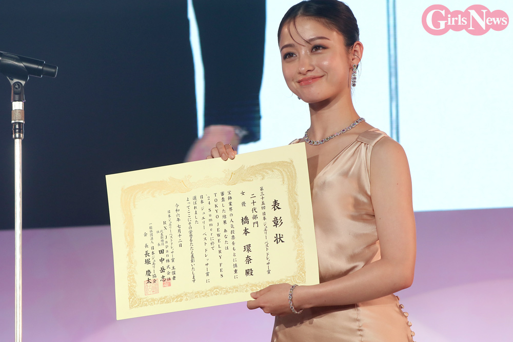 女優の橋本環奈さんが12日、「第35回 日本ジュエリー ベストドレッサー賞」の20代部門に選出され、東京ビッグサイトで開催された表彰式に出席した。