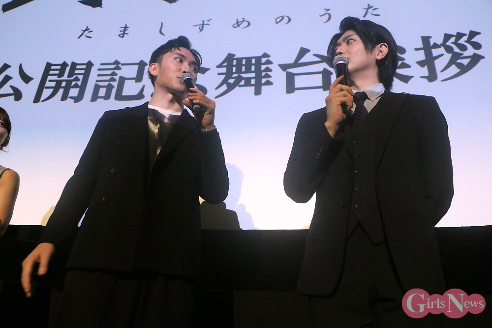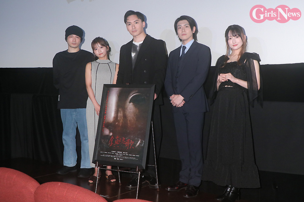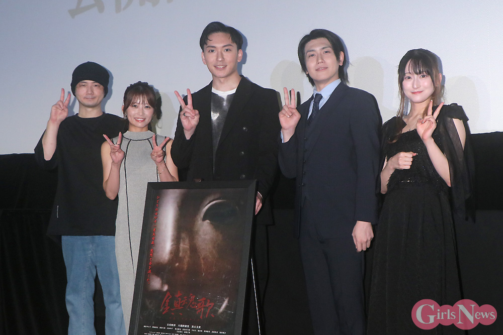 2.5次元舞台、アイドルなど第⼀線で活躍する⼈気実⼒派俳優が出演するホラー映画『鎮魂歌〜たましずめのうた〜』の初日舞台挨拶が12日、池袋・池袋HUMAXシネマズにて開催され、主演の⽇向野祥をはじめ、⼤滝紗緒⾥、⿊⽊⽂貴、梅原サエリらが登壇した。