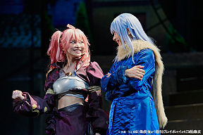 舞台前半「魔王来襲編」では、世界を滅ぼすこともできる力を持つ魔王ミリムが巻き起こす台風のような騒動が描かれ、その力とは裏腹に無邪気で天真爛漫な性格を持つリムルを演じる宇咲の可愛らしさに注目。もちろん、リムルとのバトルや、リムルが手懐け、ときに振り回されながらも“マブダチ”としての絆を強めていくところも見どころだ。