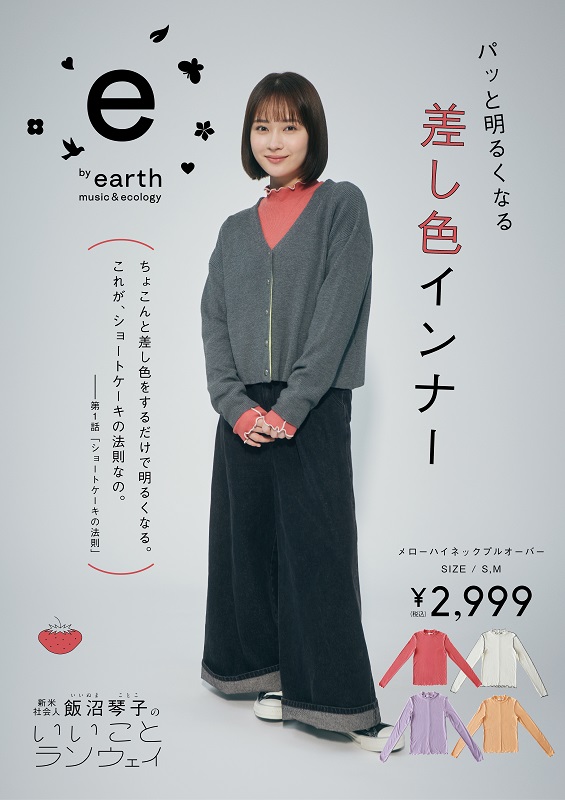 若手社会人は、ビジネスマナー・オフィスカジュアル・先輩後輩とのコミュニケーションなど「ルール」と「らしさ」の間で、仕事や仕事の服装についての悩みがつきもの。社会人1年目から5年目の若手社会人女性400名にアンケートによると、6割以上が「新人時代に“オフィスでの服装に悩んだ”」、約7割が「“自分らしい格好”よりも“ハズレのない格好”の方がいい」、約7割が「ファッションで重要なのは“覚えてもらうこと”よりも“目立たないこと”だと考えている」といったとまどいや課題を抱えているという。そんな課題に向き合い、少しでも前を向いてもらうために、“社会人にいいこと“をテーマとしたWebドラマ「新米社会人 飯沼琴子のいいことランウェイ」と、ドラマに連動したブランド初となる「e by earth music&ecology」という新しいコレクションが作られたとのことだ。