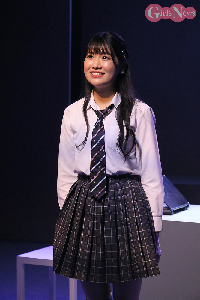 続いて、物語Cで人類の存亡を担う科学者・真野朝美を演じる有沢澪風さんは、「稽古中に自分の役柄に圧倒されることも多かったが、客観的に稽古を見たとき、その魅力に改めて気づかされた。観客のみなさんに、この素晴らしい物語を届けたい」と真剣な眼差しで語る。その演技に対する真摯な姿勢が印象的であった。