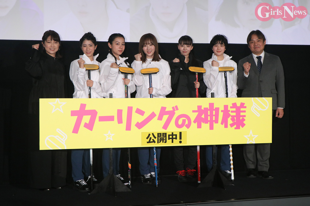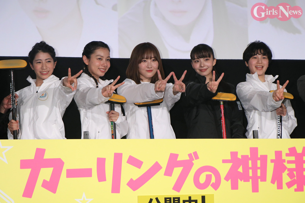 劇中のユニフォーム姿で登壇したキャストは、それぞれカーリングのスティックを手にしていたが、長澤さんだけがひとりデッキブラシを持ってボケをかまし、本田さんが「ちょっと待って待って!、なんでブラシ持ってきてんの!?」と突っ込んで、初っ端から観客の笑いを誘った。