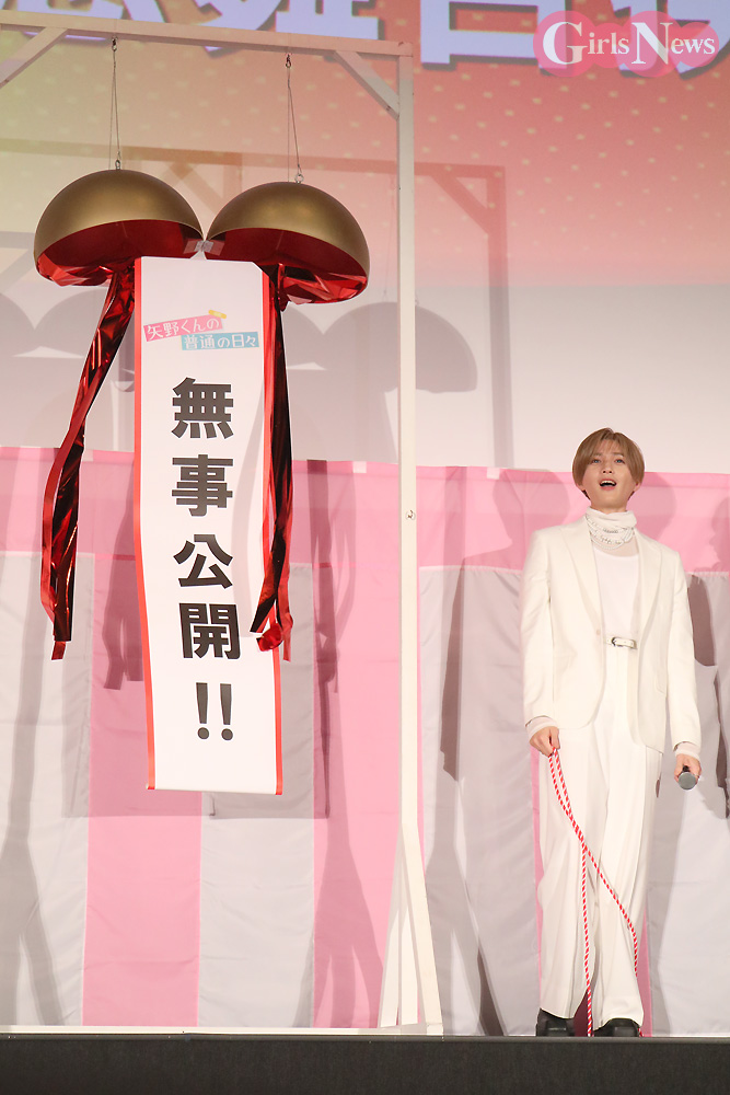 イベントでは八木さんが“運試しくす玉”に挑戦。作品の大ヒットを祈願し、景気よく一発で大当たりを引きたかったところだが、池端さんは「引き当てられないと思います。矢野くんを演じた八木さんなので」と予想。結果は予想通り見事にハズレを引き、客席から笑いが起こった。八木さんは気を取り直してアタリを引き直して胸をなでおろし、「無事公開することができてすごく嬉しいです。映画が始まった時からどっぷりと浸かれる内容で、悪い人が一人も出てこない作品です。すごくハッピーで幸せな気持ちになって帰っていただけることを願っています」とコメントしてイベントを締めくくった。