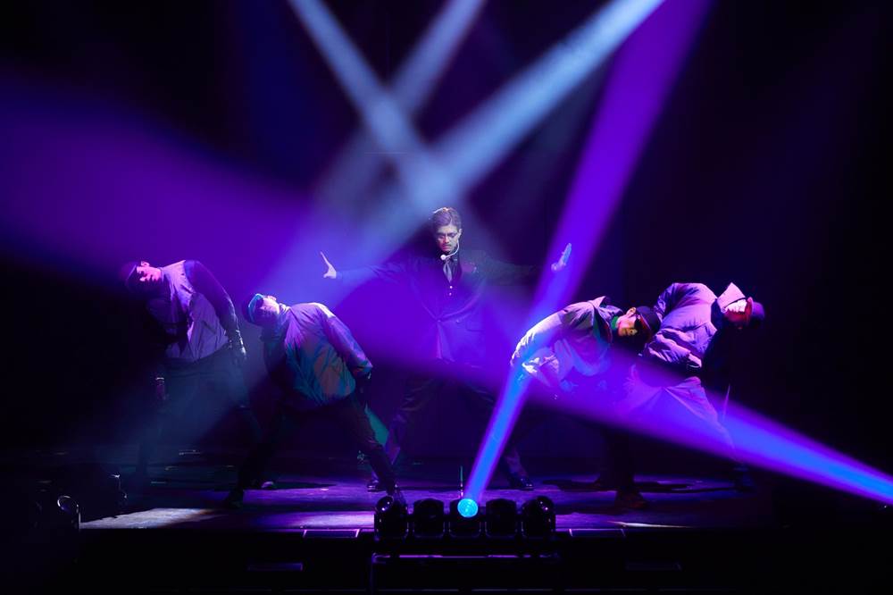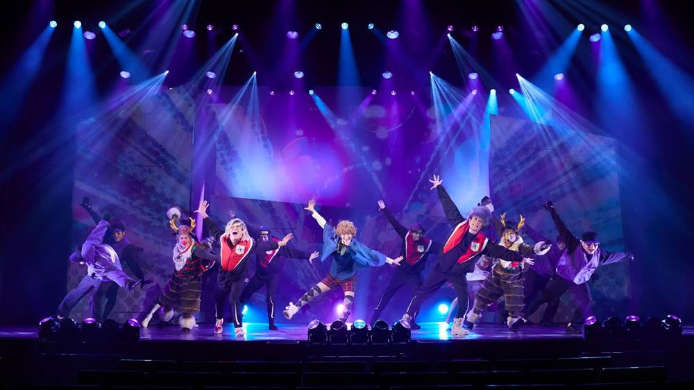 作品は台詞を使わず、ダンスと芝居、そしてJ-POPで物語を紡ぐ独特のスタイルを採用。プロジェクション映像を活かした創意工夫あふれる舞台装置は、飛び出す絵本をめくるようなワクワク感を与える。舞台はシンプルでスピーディに展開してゆく。