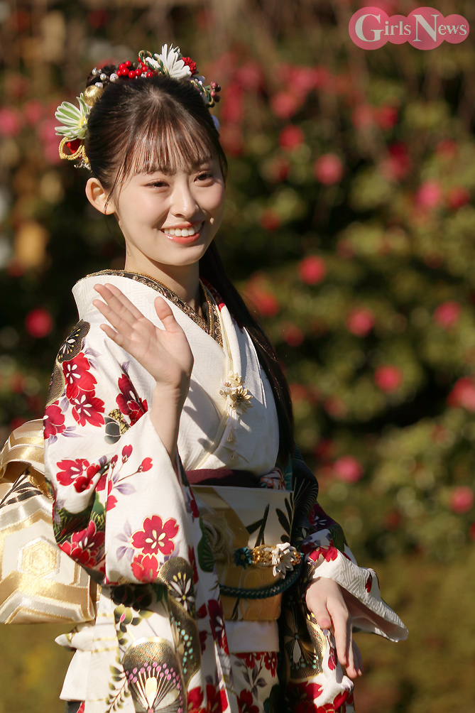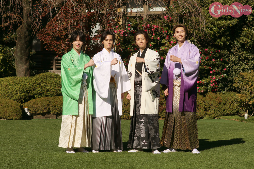 さらに、今年は男性俳優の4名がお披露目された。「ジュノン・スーパーボーイ・コンテスト」を登⻯門に、『仮面ライダーエグゼイド』で役者デビューした飯島寛騎と、『仮面ライダージオウ』の奥野壮。TikTok フォロワー数370万人を誇る百瀬拓実。スーパー戦隊シリーズ『魔進戦隊キラメイジャー』で役者デビューした庄司浩平が艶やかな晴れ着姿を披露した。