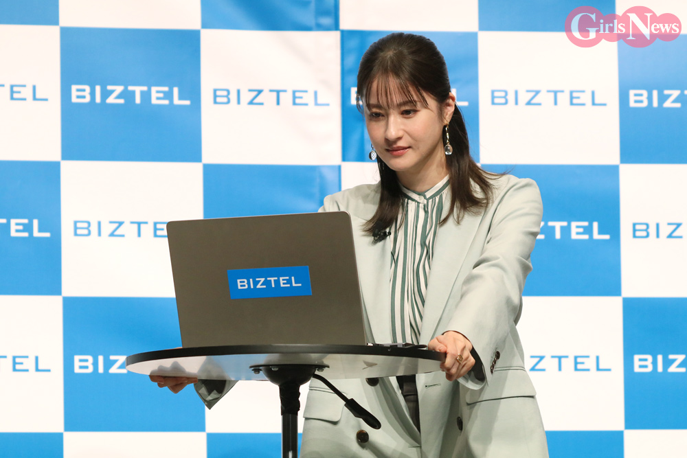 女優の松本若菜さんが16日、都内で行われたクラウド型コールセンターシステム「BIZTEL(ビジテル)」の新CM発表会に登場した。松本さんは、CMの役柄そのままにテレホンオペレーターに扮し、会場で見事な電話対応を披露した。