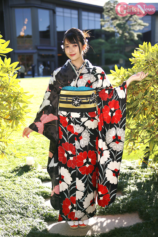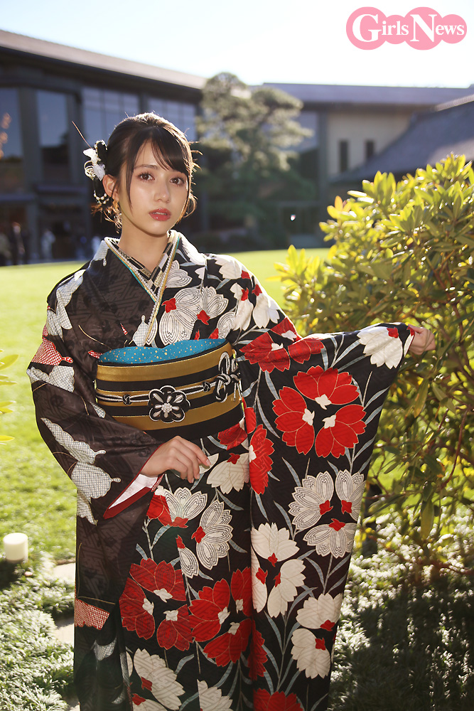 「本当ですか! よかった(笑)。自分的にはピンクが好きなので、ピンクの晴れ着を着たかったなという思いもありつつ、赤って結構勝負色なので、黒と赤のはっきりした色の晴れ着も着られてすごく嬉しいです!」