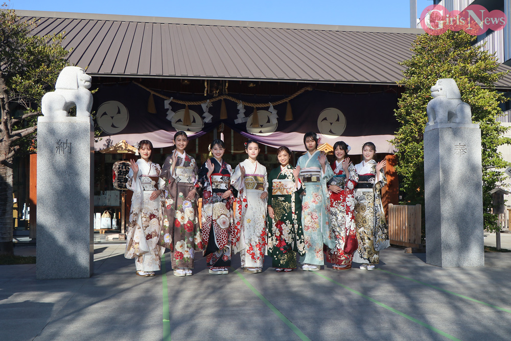 エイベックス・マネジメント・エージェンシー所属の若手女性タレント8名による「新春参拝および晴れ着お披露目会」が10日、新宿区・赤城神社にて行われた。