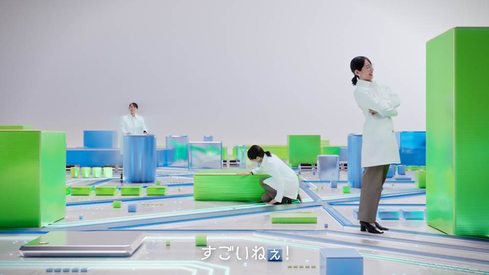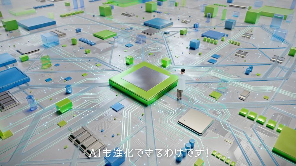 CM「AI DIC岡 登場篇」では、吉岡さん演じるAI DIC岡里帆が半導体部品と会話し、その進化への感謝と期待を伝える様子が描かれている。高速処理を象徴する超人的な動きやコミカルな表情が見どころとなっており、未来のデジタル社会を支える材料技術を親しみやすく伝える内容だ。