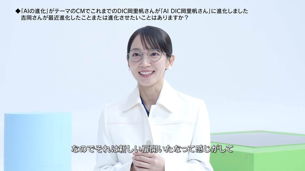 女優の吉岡里帆さんが、DIC株式会社の新たな企業ブランドCM「DIC岡里帆」シリーズの第6弾に15日より出演、進化したキャラクター「AI DIC岡里帆」を演じている。