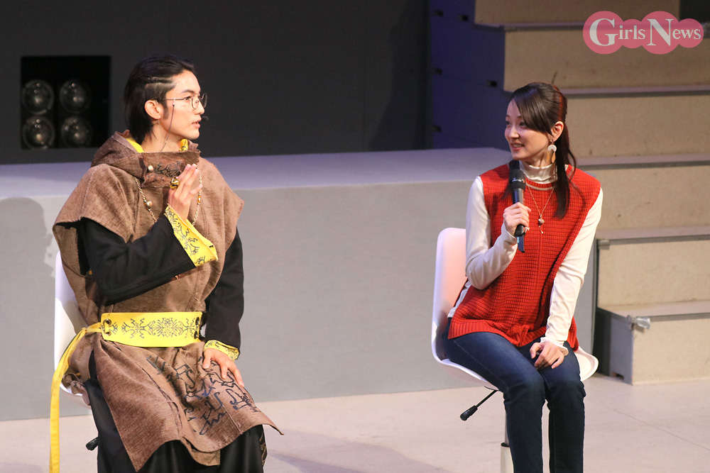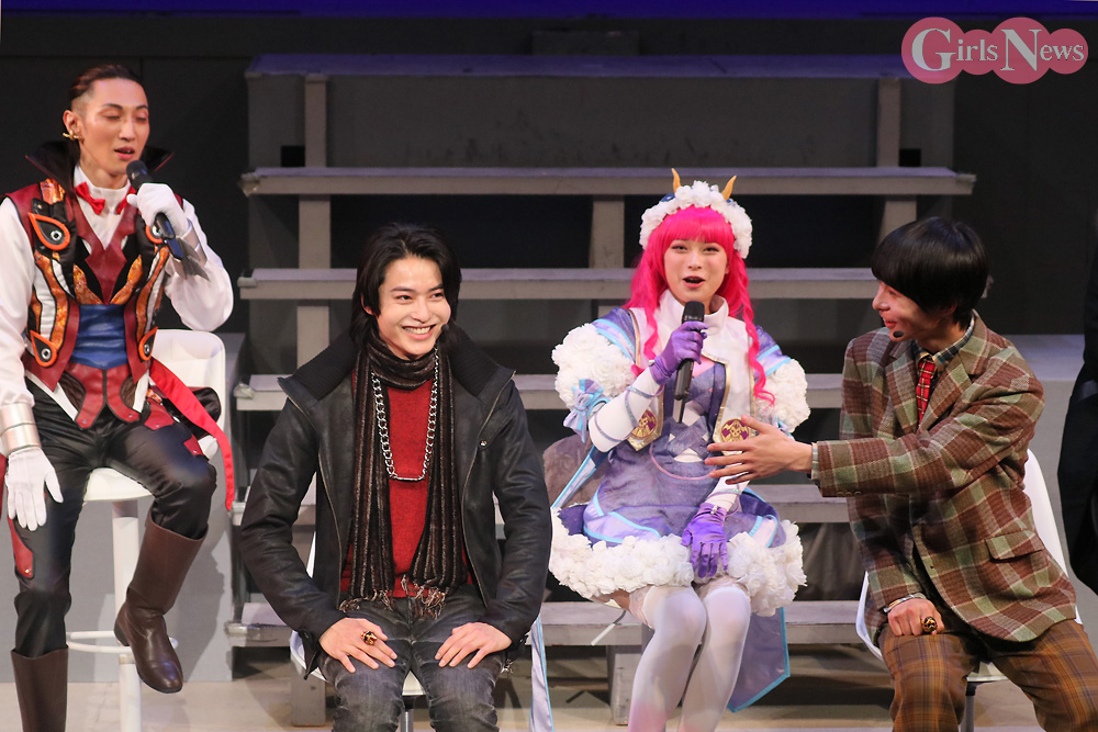 さらに、悪の組織ブライダンの幹部を演じるキャストも登壇した。“不敗のファイヤキャンドル”役の三本木大輔は「いち富士、に鷹。三本木」と自己紹介をして場を和ませた。“慈愛のブーケ”を演じるまるぴは、「ブーケと作品を愛してもらえるように一生懸命が頑張ります」と語り、謎の男・クオンを演じるカルマは「謎に包まれすぎて、これ以上何も言えません」と苦笑いした。