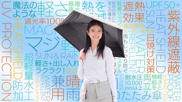 今田さんは kowaza について「とにかくスマートですよね!シュッと閉じて、ささっとひと巻きでしまえます。折り畳み傘をたたむのが苦手なわたしでも簡単にできるので、欲しくなりました」とコメント。マジカルテック プロテクション には「とにかく軽さに驚きました。細くて、すごく収納もしやすいので、どこにでも手軽にもっていけそうです!」と感想を述べた。 ミラクルテック に対しては、「ポケットにでも入ってしまいそう。“こんなに小さい傘が存在するんだ!”って、驚きました」と語った。