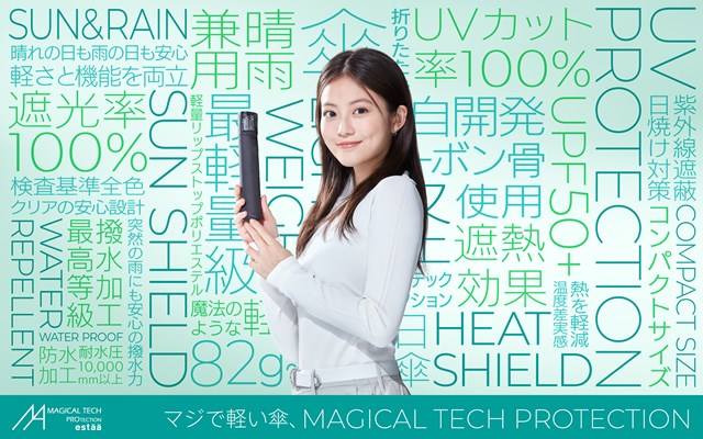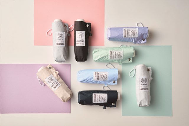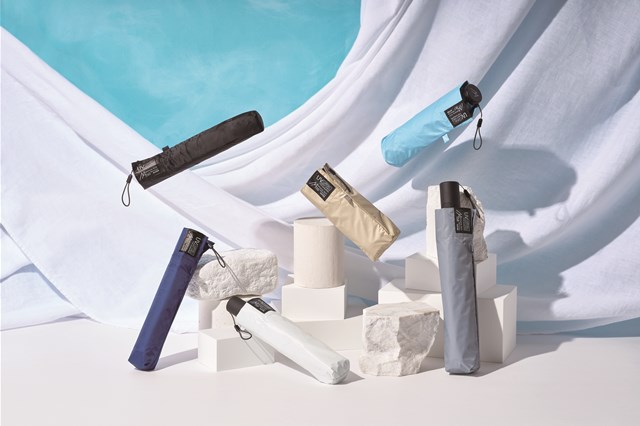 ムーンバット株式会社のエスタブランドは「たたみやすさ」「軽さ」「コンパクトさ」にこだわった傘を展開しており、今年は新商品「kowaza」をはじめ、昨年ヒットした「マジカルテック プロテクション」「ミラクルテック」の新ラインナップを発表した。