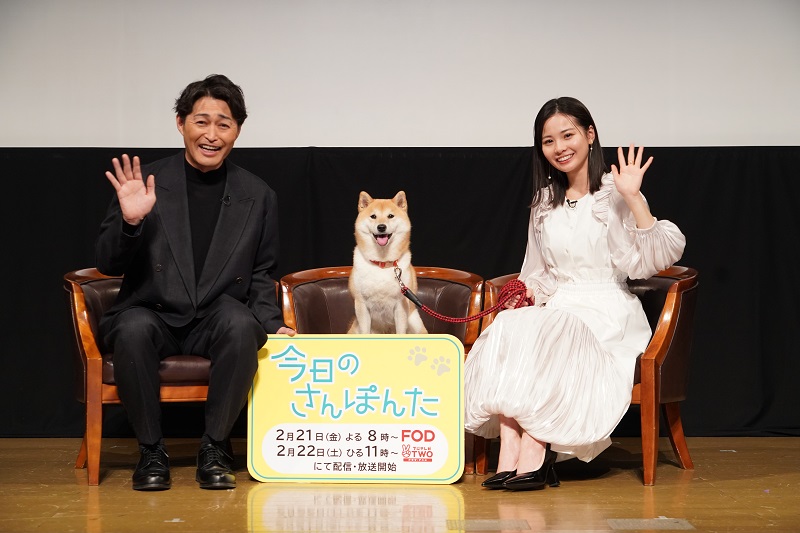 完成発表イベントは、二人とともに、ポン太を演じた柴犬・のこが登壇し、西山喜久恵(フジテレビアナウンサー)の司会進行のもと開催された。