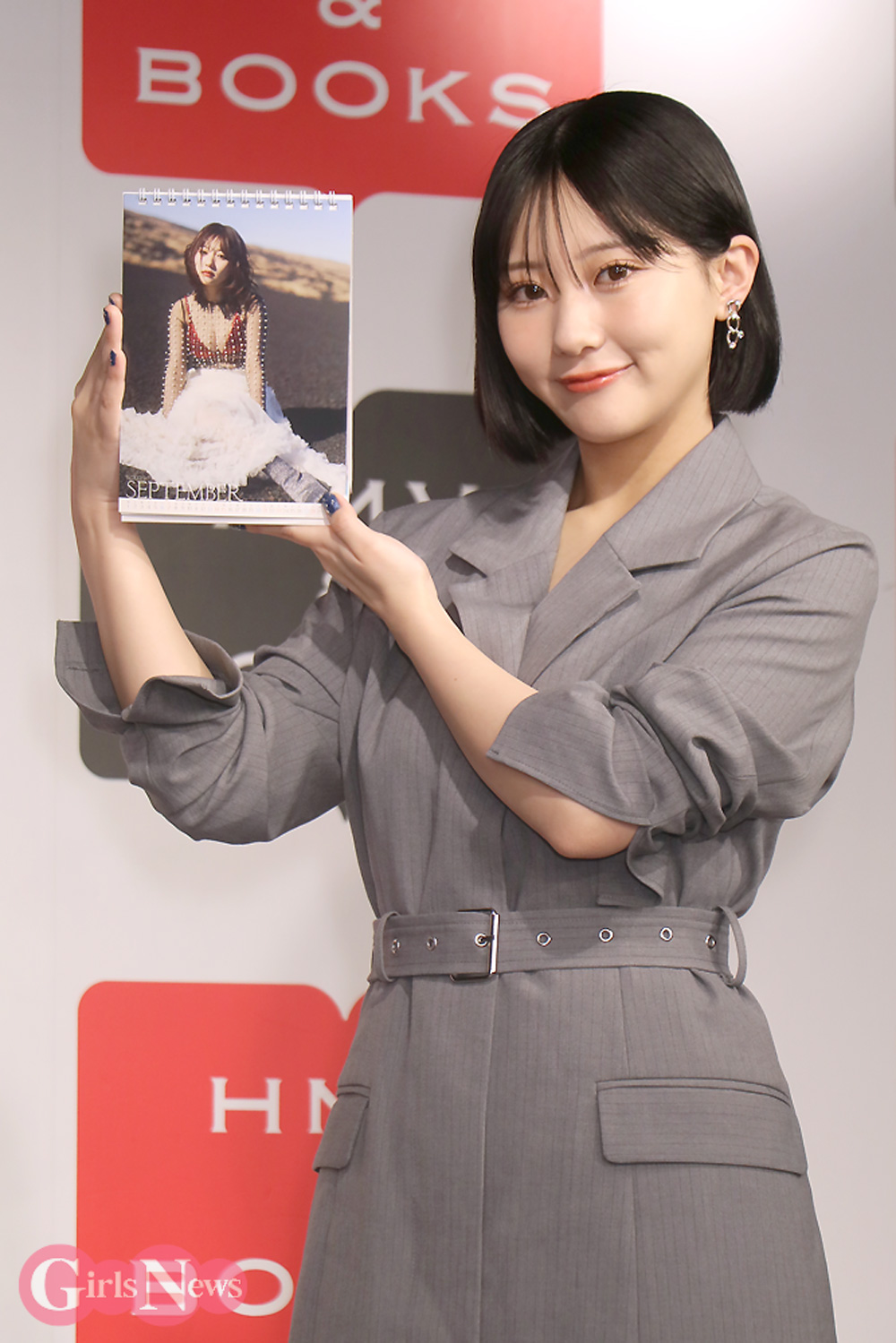 お気に入りの9月のページについては、「人生初の裏砂漠で撮影しました。寒かったけど景色が綺麗で、伊豆大島でしか撮れないカット。普段の‘かわいいみくりん’ではなく、かっこよさで勝負しました」と熱く語った。